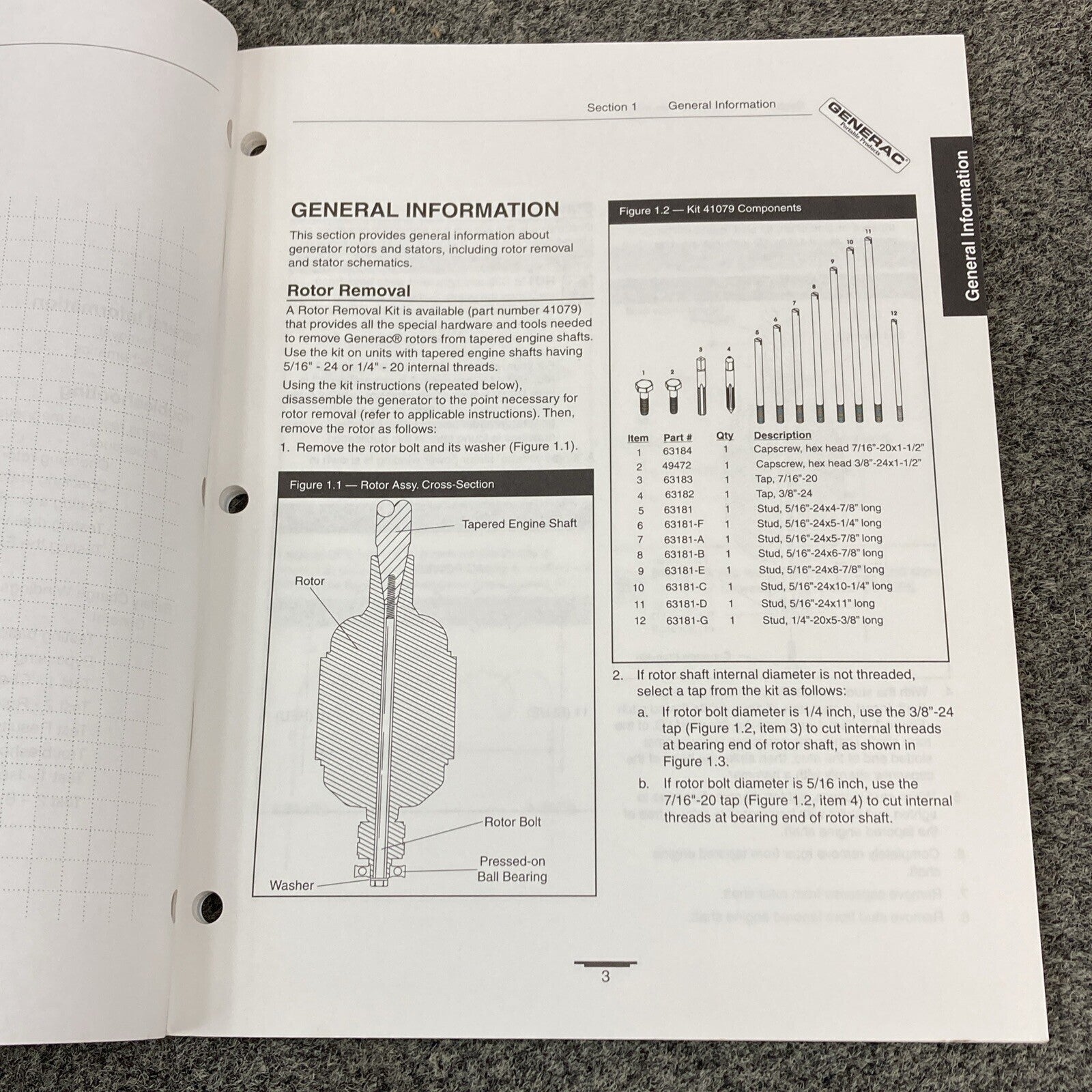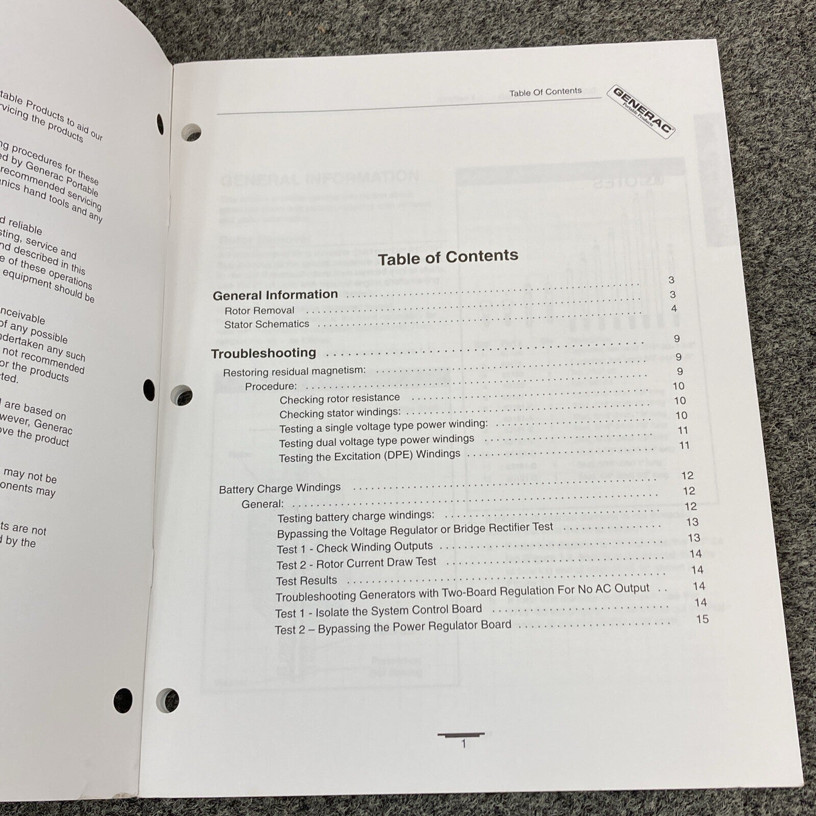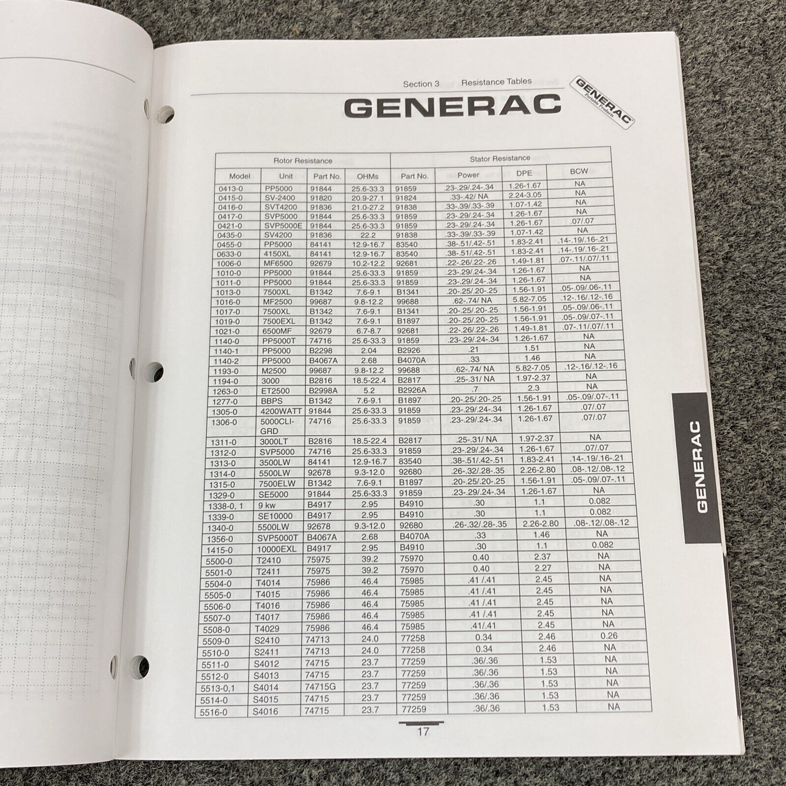 GENERAC PORTABLE GENERATOR 87971 ROTOR/STATOR RESISTANCE TABLES