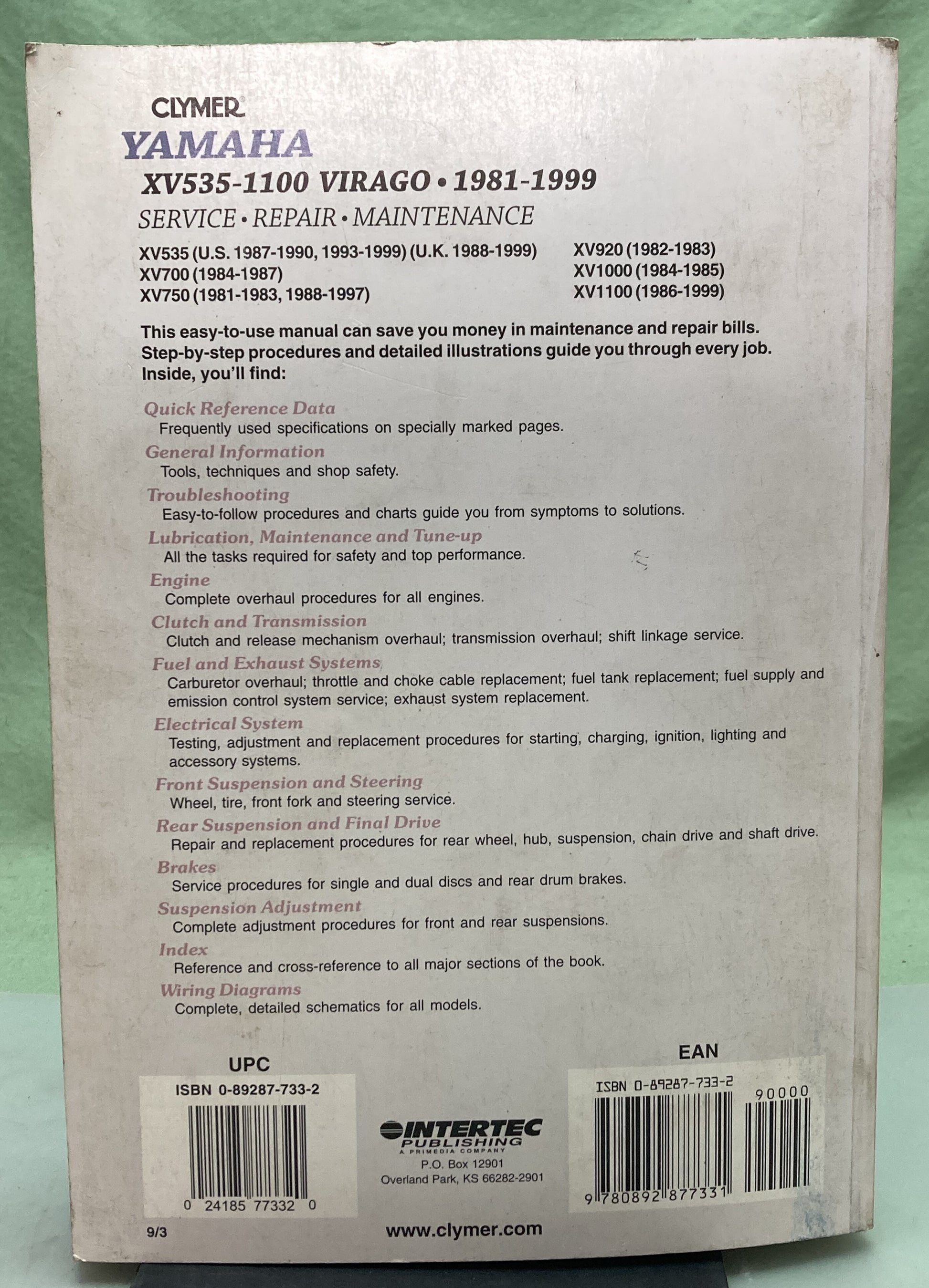 Genuine Clymer M395-9 Yamaha XV535-1100 Virago Service Manual 1981-1999