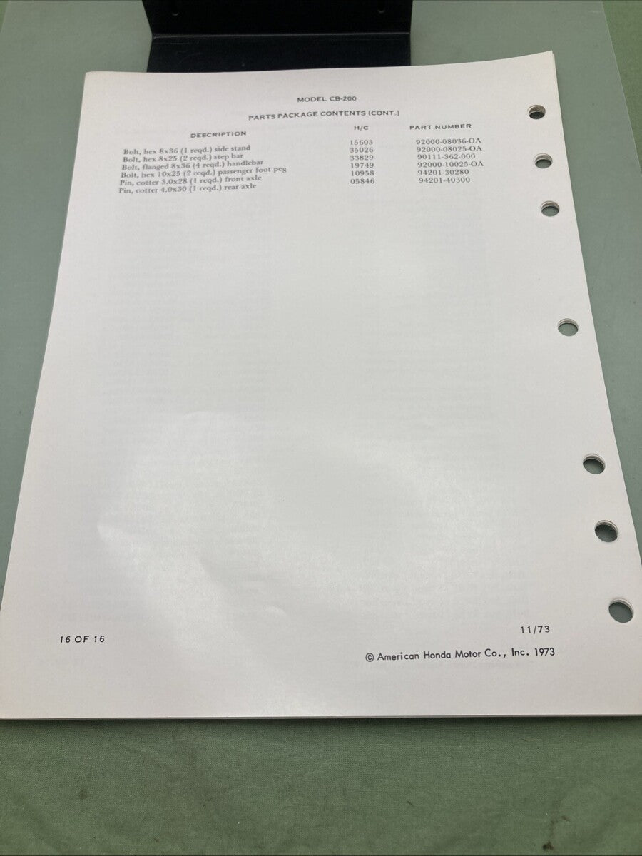 GENUINE HONDA 6135401 CB200-CL200 SHOP MANUAL 1974