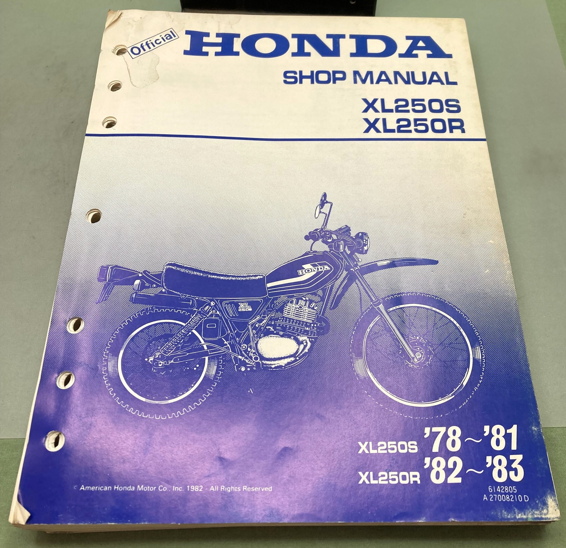 Genuine Honda 6142805 XL250S, XL250R Shop Manual 1982