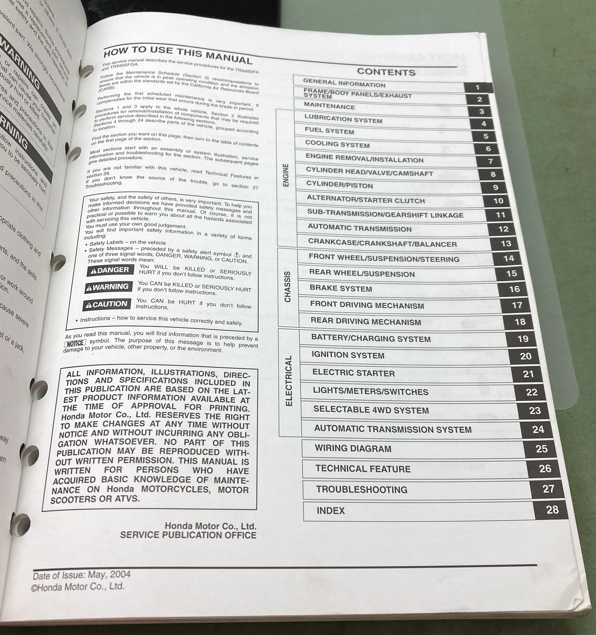 Genuine Honda 61HN802 TRX650FA TRX650FGA Service Manual 2003-2005