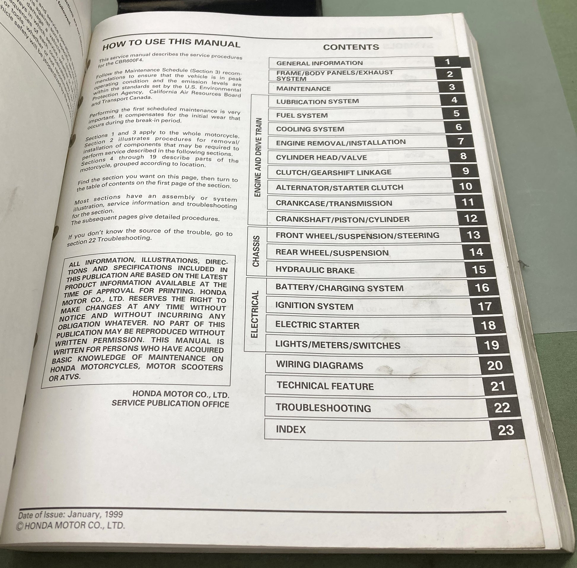 Genuine Honda 61MBW00 CBR600F4 Service Manual 1999