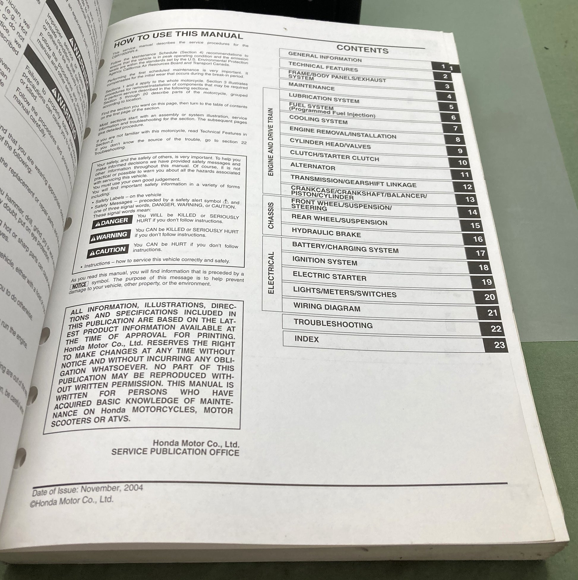 Genuine Honda 61MEL01 CBR1000RR Service Manual '04-'05