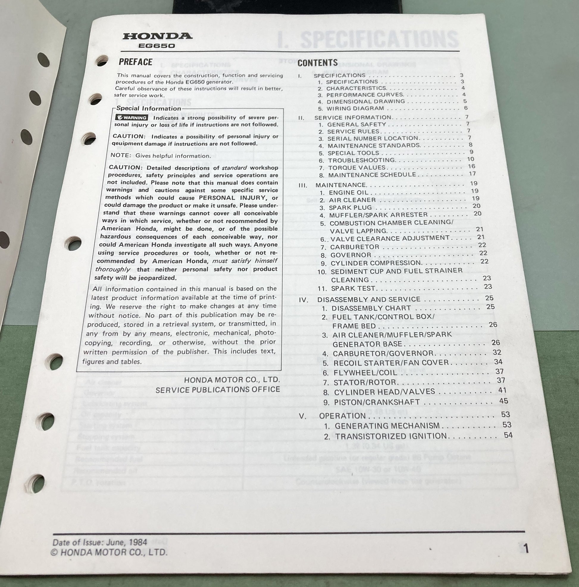 Genuine Honda 61ZA850 EG650 Shop Manual 1984