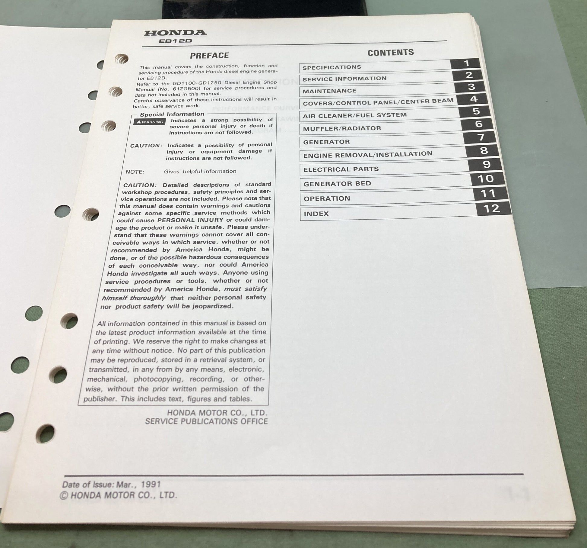 Genuine Honda 61ZC600 EB12D Generator Shop Manual 1991