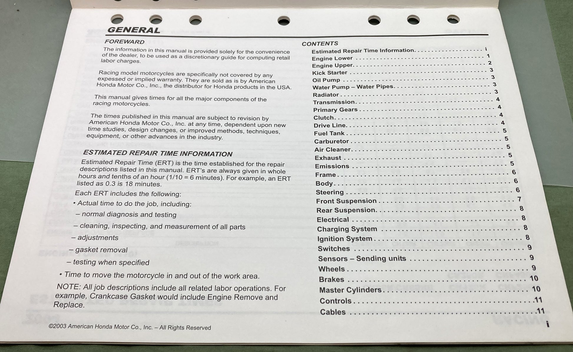 Genuine Honda S0318 Racing Estimated Repair Times Manual 2004