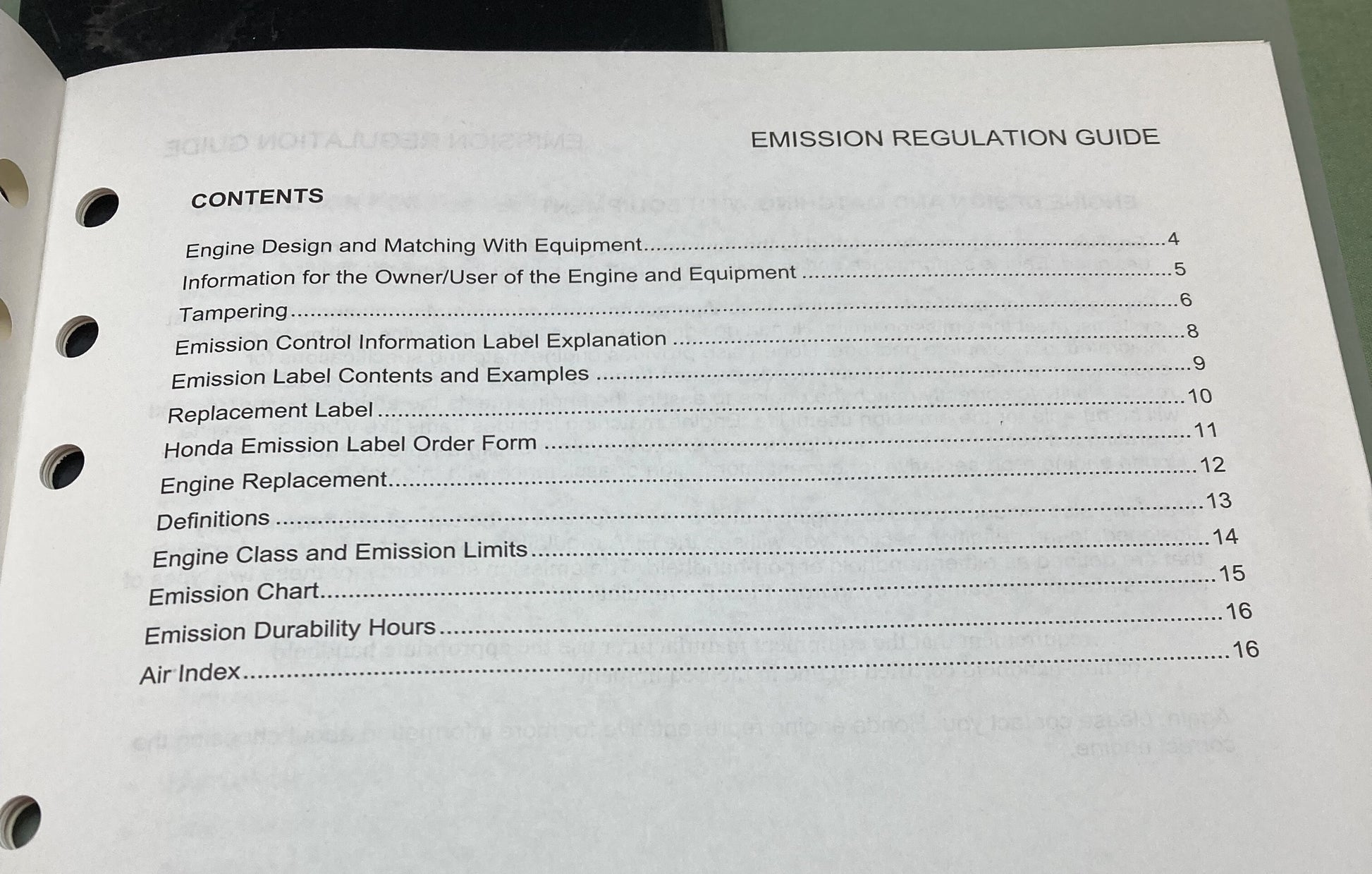 Genuine Honda TO971 Emission Regulation Guide 1997