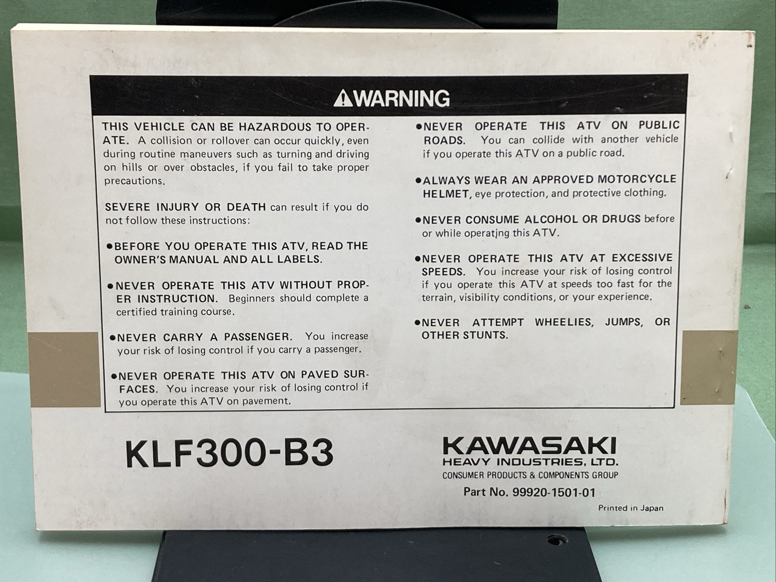 GENUINE KAWASAKI 99920-1501-01 KLF300 BAYOU OWNER'S MANUAL