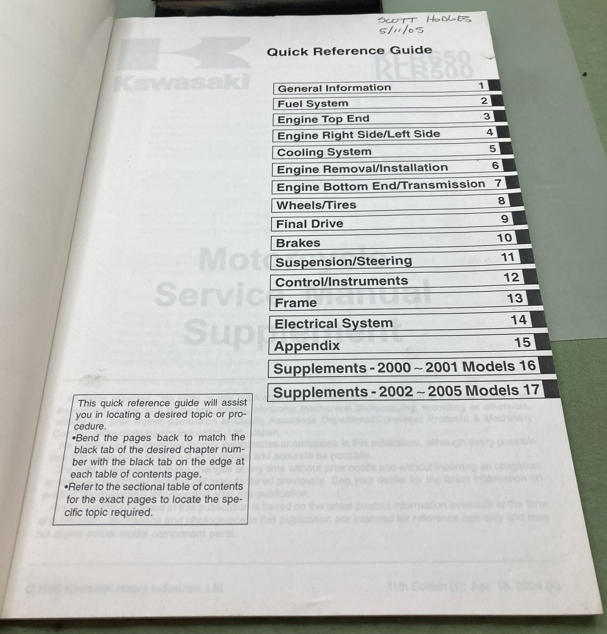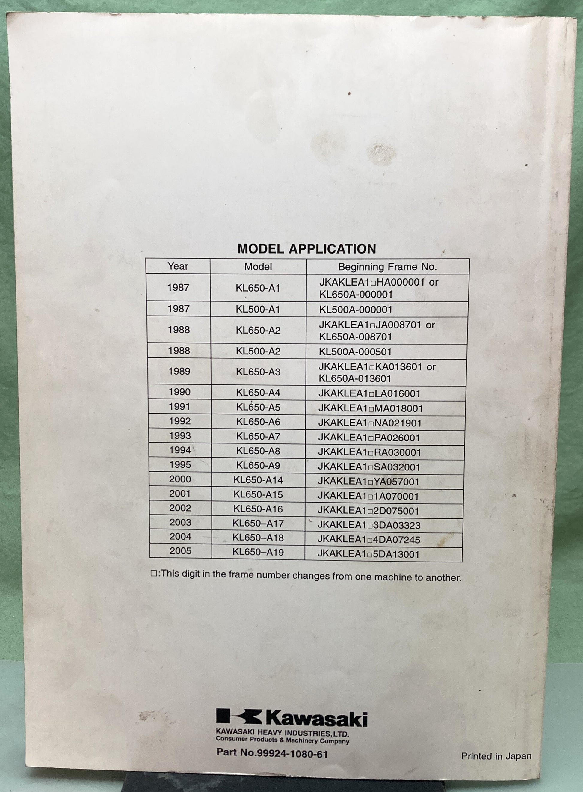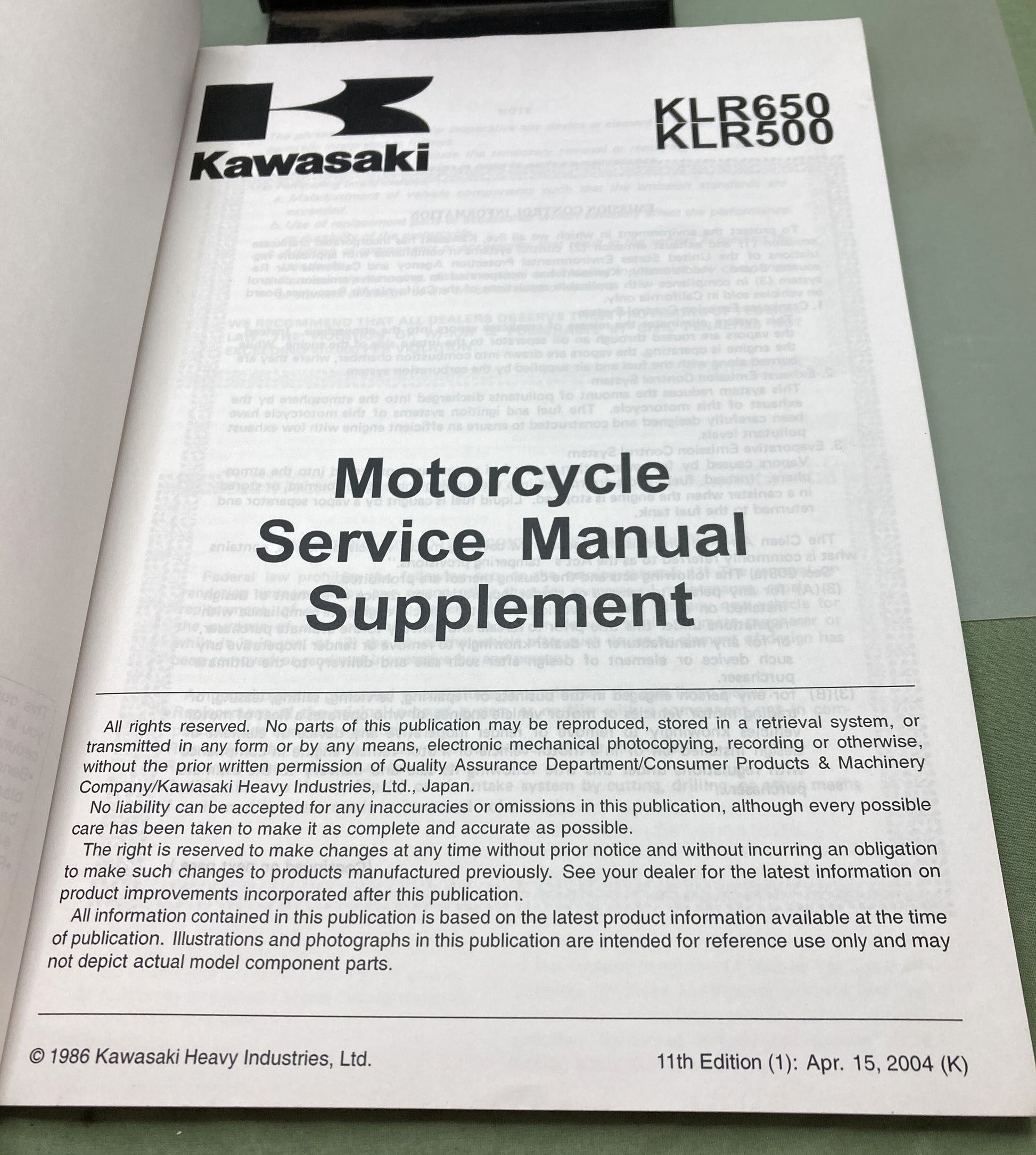Genuine Kawasaki 99924-1080-61 KLR650 KLR500 Supp. Service Manual 2004