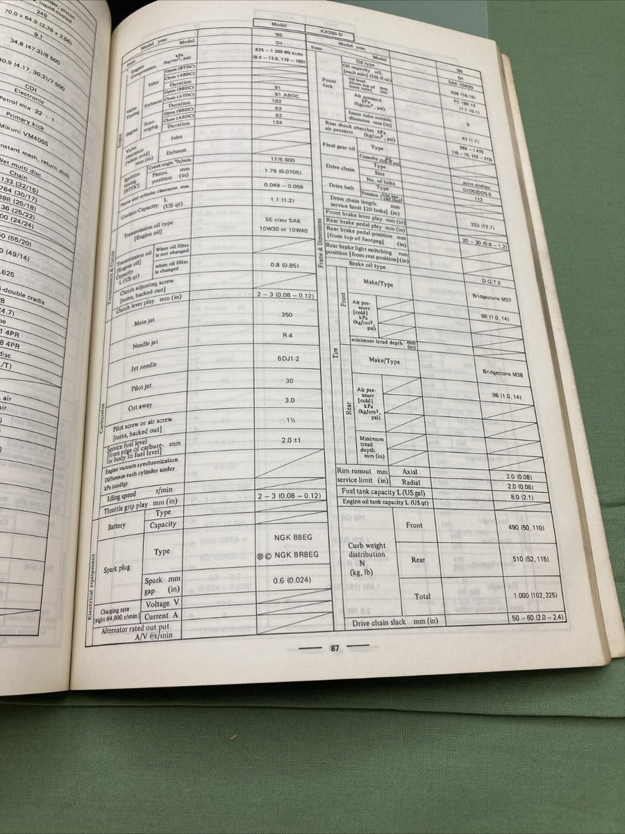 GENUINE KAWASAKI 99926-1009-01 SERVICE SPECIFICATIONS HANDBOOK '84 AND '85 MODEL