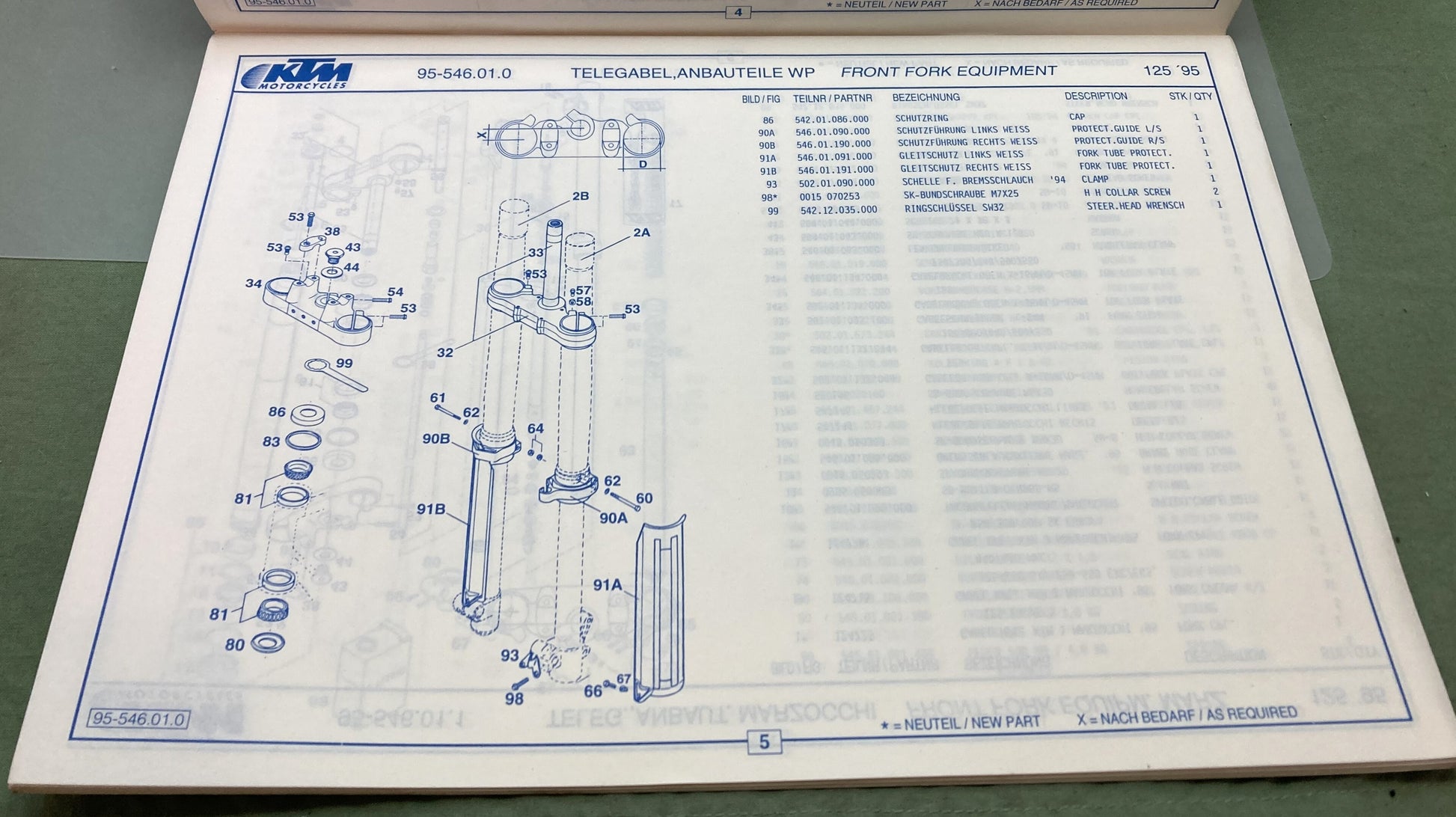 Genuine KTM 3203791094 125 SX/EXC/EGS Spare Parts Manual 1995