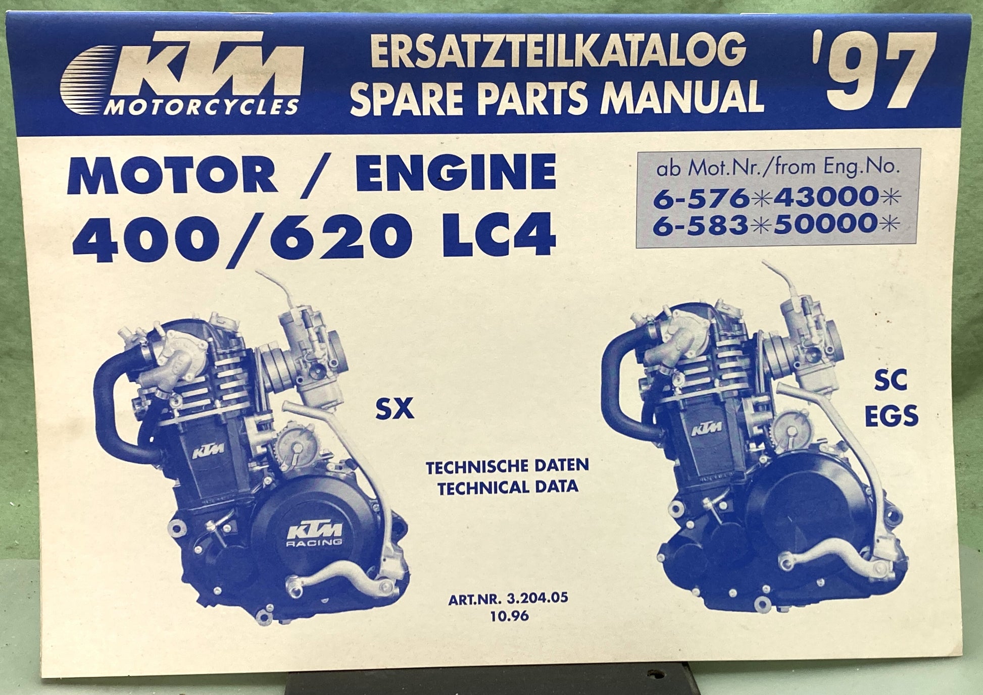 Genuine KTM 3204051096 400/620 LC4 Motor Spare Parts Manual '97