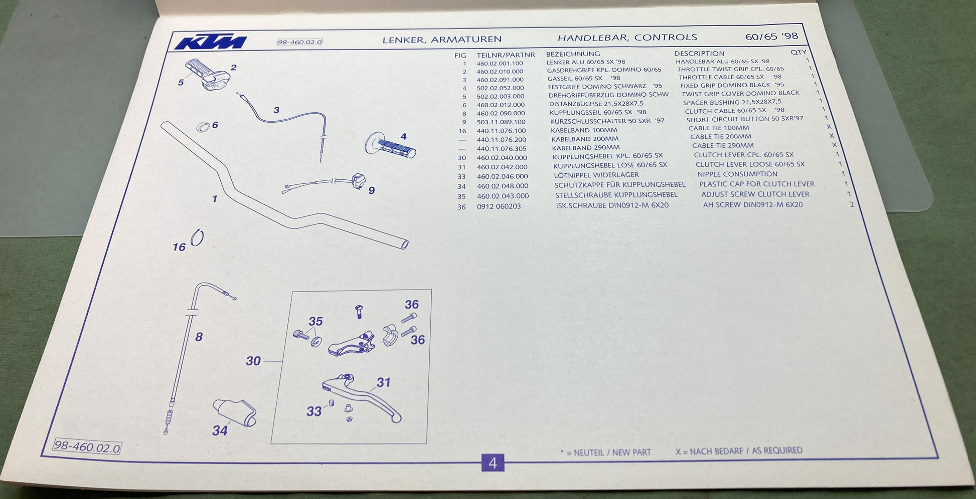 Genuine KTM 320430298 60/65 SX Spare Parts Manual '98