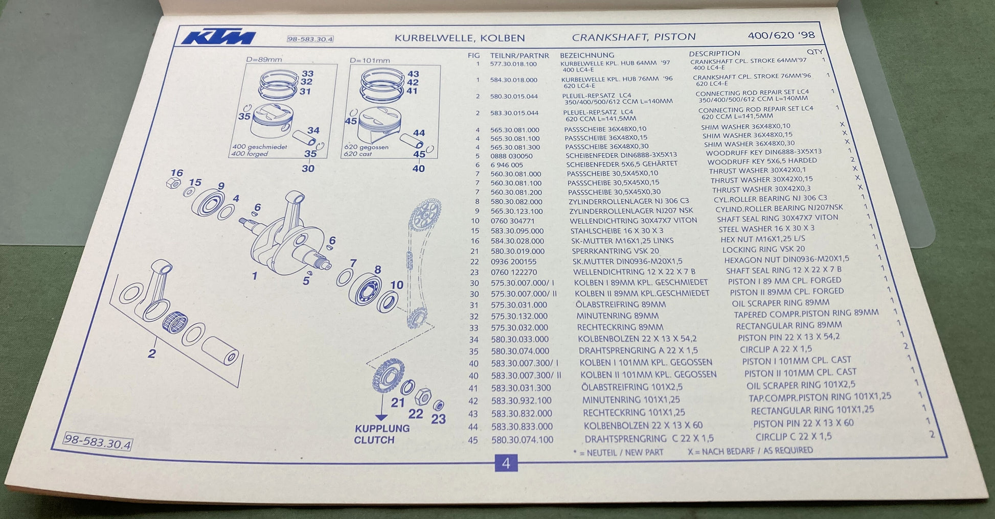 Genuine KTM 3204421297 400/620 R/XC e Motor Engine Spare Parts Manual '98