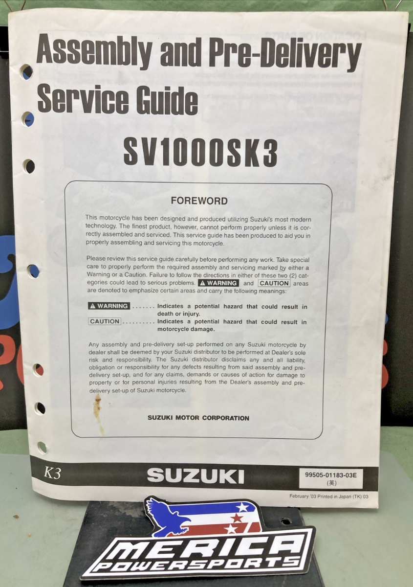 GENUINE SUZUKI 99505-01183-03E SV1000SK3 ASSEMBLY AND PRE-DELIVERY SERVICE GUIDE
