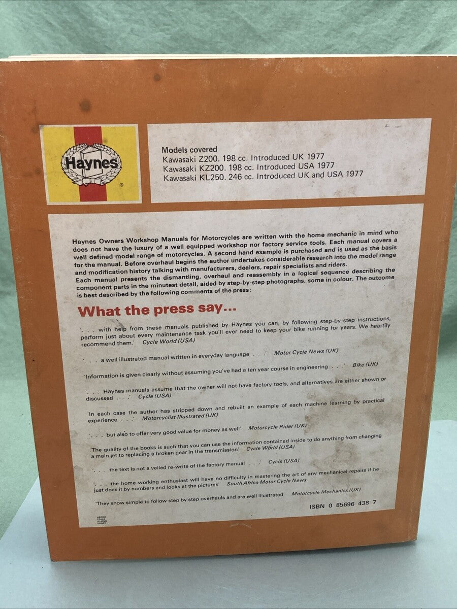 HAYNES 438 Z200 AND KL250 SINGLES 198CC 246CC 1977-ON WORKSHOP MANUAL KAWASAKI