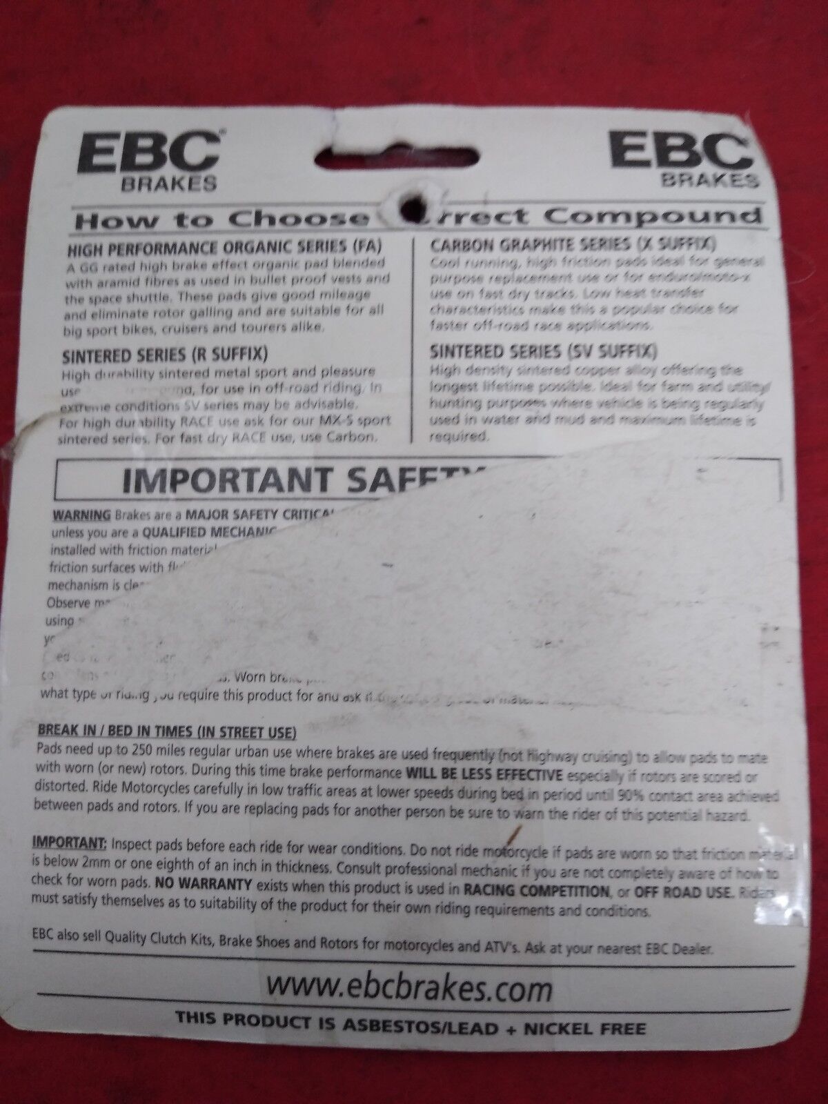 New EBC Brake Pads Aprilia Honda Suzuki W10243 FA193