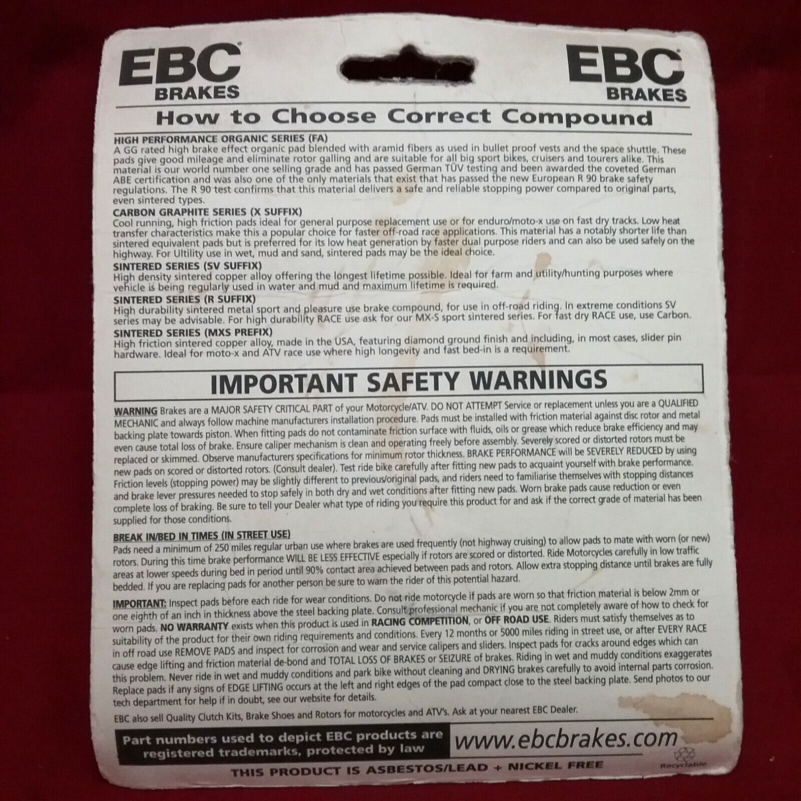 NEW EBC FA230X HIGH PERFORMANCE BRAKE PAD KAWASAKI KLX SUZUKI DRZ