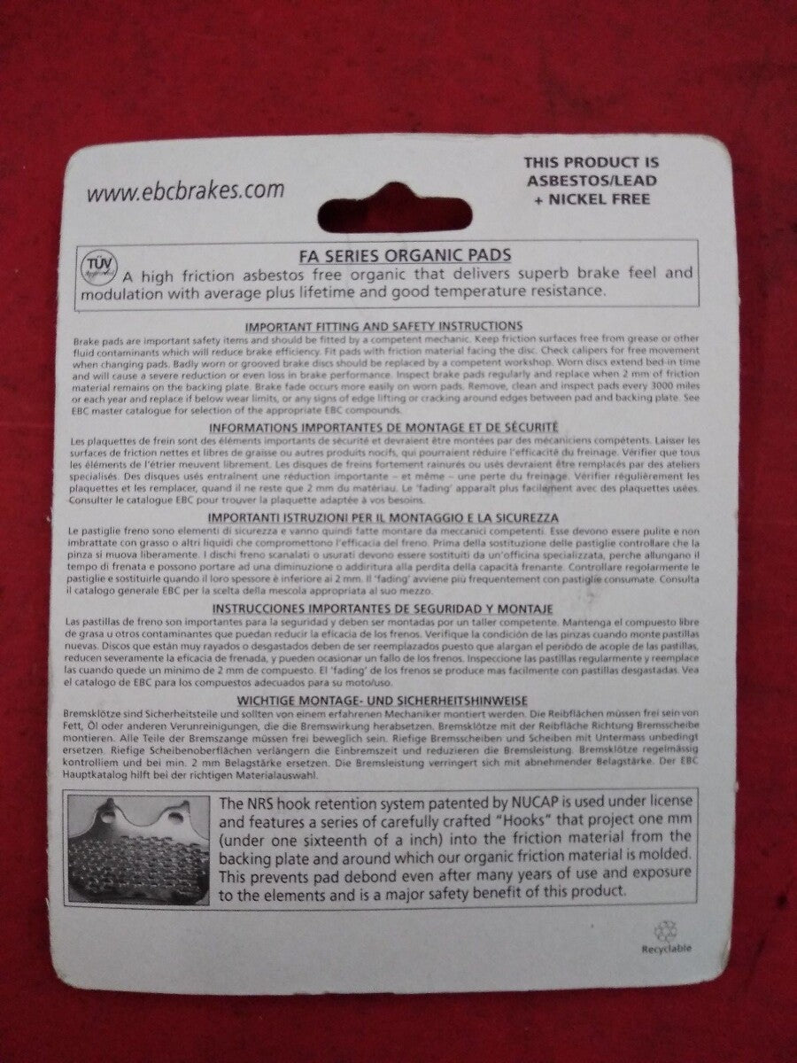 NEW GENUINE EBC FA231 HIGH PERFORMANCE ORGANIC BRAKE PADS