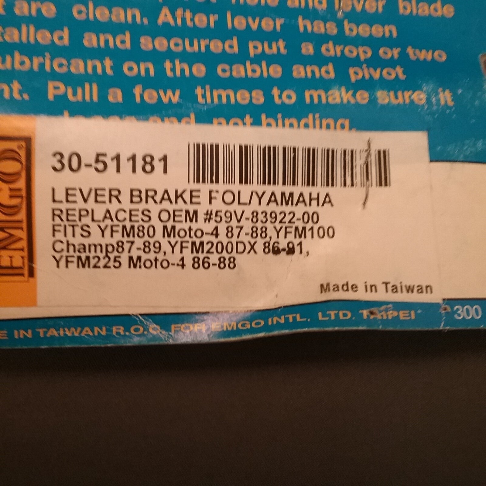 NEW EMGO 30-51181 LEVER 2 YAMAHA 59V-83922-00 Moto-4 86-13