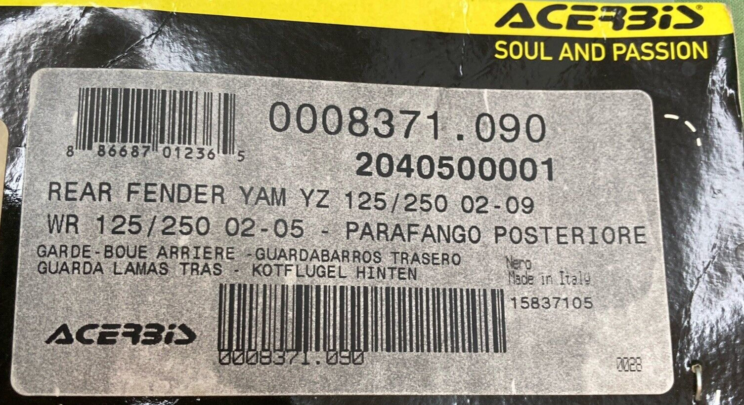 NEW GENUINE ACERBIS 15-8371-82 REAR FENDER, YAMAHA YZ125/250 2002-09