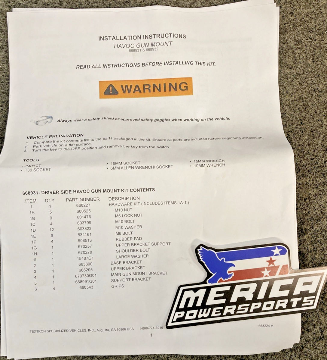 NEW GENUINE ARCTIC CAT 668931 Driver Side Gun Mount - 2018-2020 Havoc