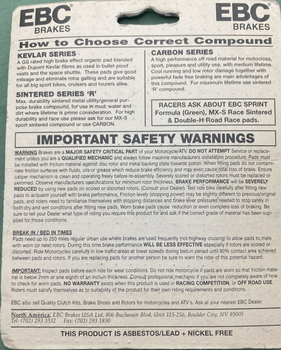 NEW GENUINE EBC FA152/2R SINTERED BRAKE PADS SUZUKI YAMAHA