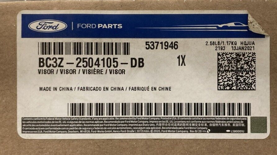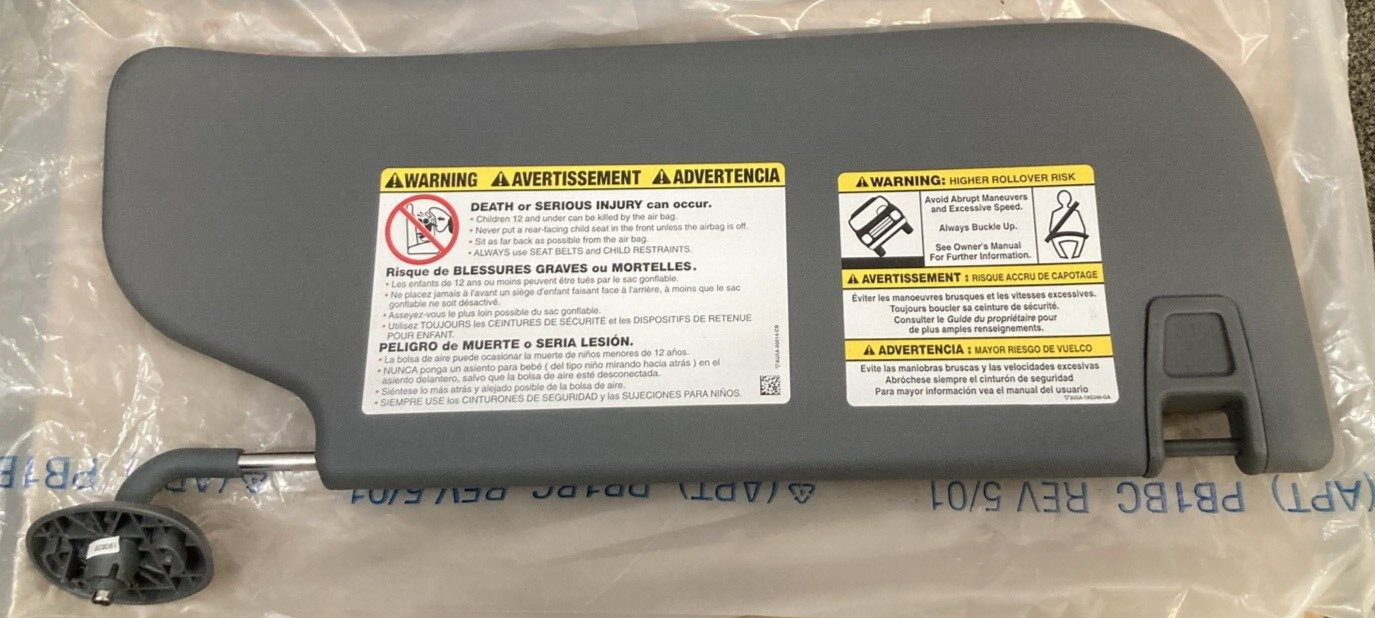 NEW GENUINE FORD BC3Z-2504105-DB SUN VISOR ASSEMBLY STEEL GRAY LEFT W/OUT MIRROR