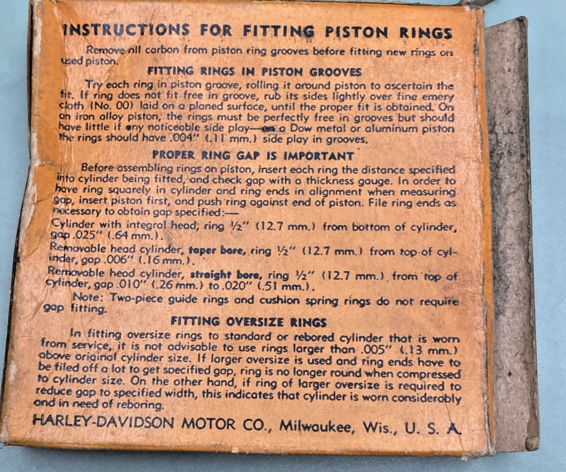 NEW GENUINE HARLEY DAVIDSON 263-38S / 22395-38 PISTON RING .050 OS (1 SET OF RINGS)