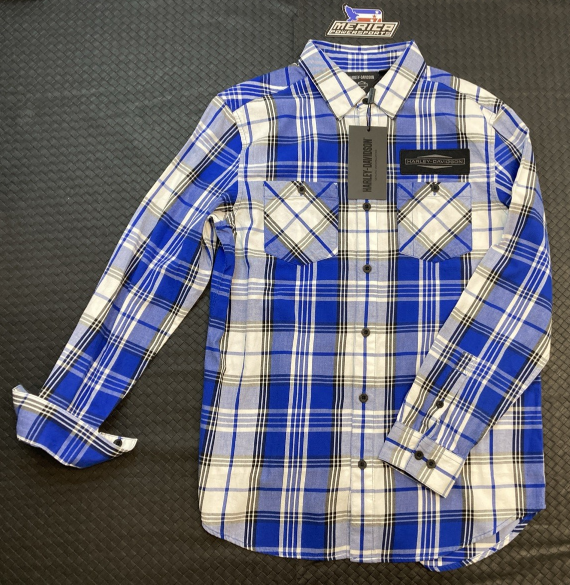 NEW GENUINE HARLEY DAVIDSON 96034-25VM MEN'S MD Men's Stacked Bar & Shield Long Sleeve Plaid Shirt