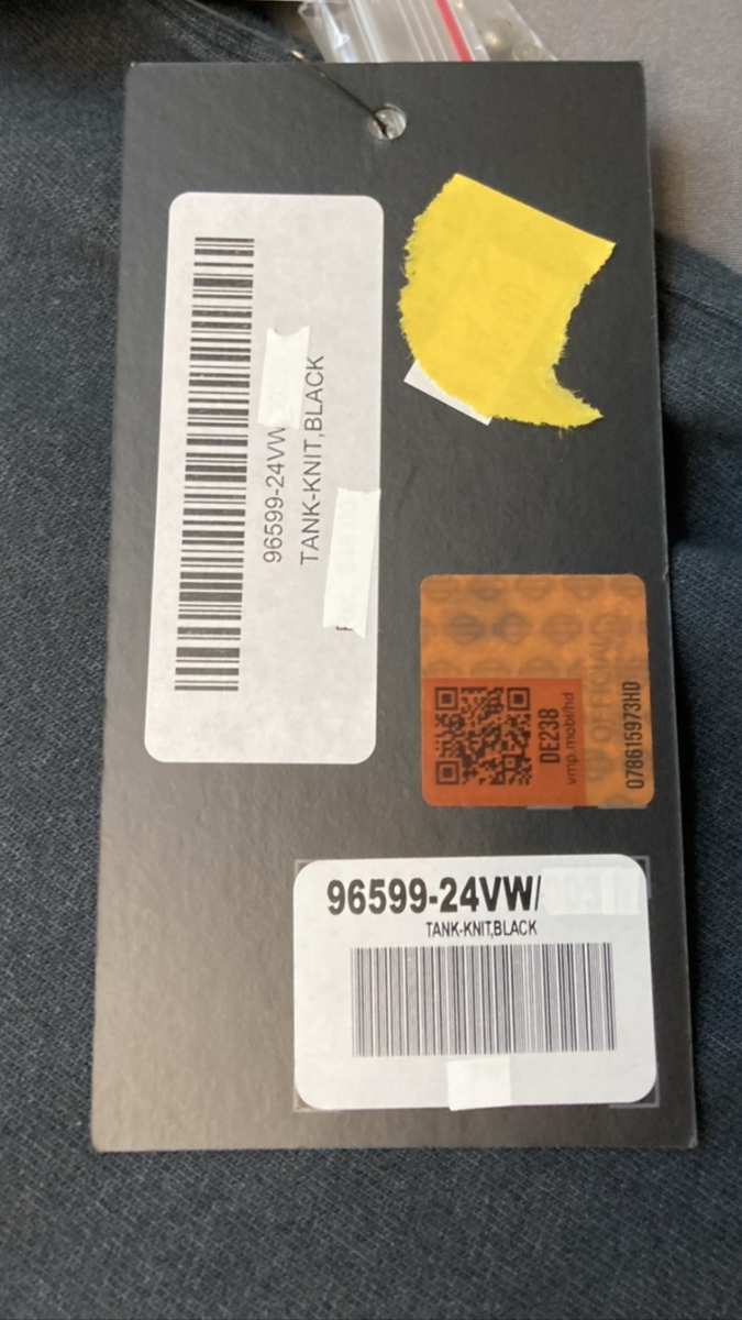 - Printed graphics on the front of this black tank proudly display the legendary Harley-Davidson® Motorcycles signature and the eagle and flame artwork from a 1980s Rally design