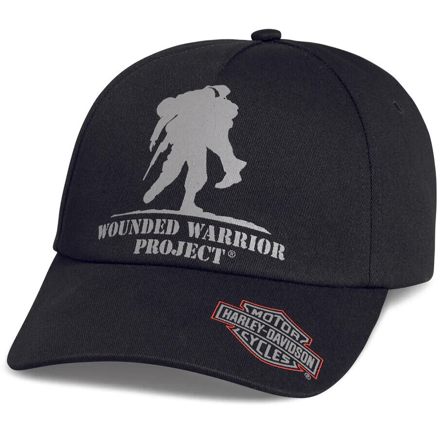Look sharp and support a great cause with the Harley-Davidson Men's Wounded Warrior Black Cap! Featuring the Project Wounded Warrior logo and the Harley-Davidson Bar & Shield graphic on the bill, this cap will keep you in style and your head comfortable with the adjustable closure. Make a difference with every wear!