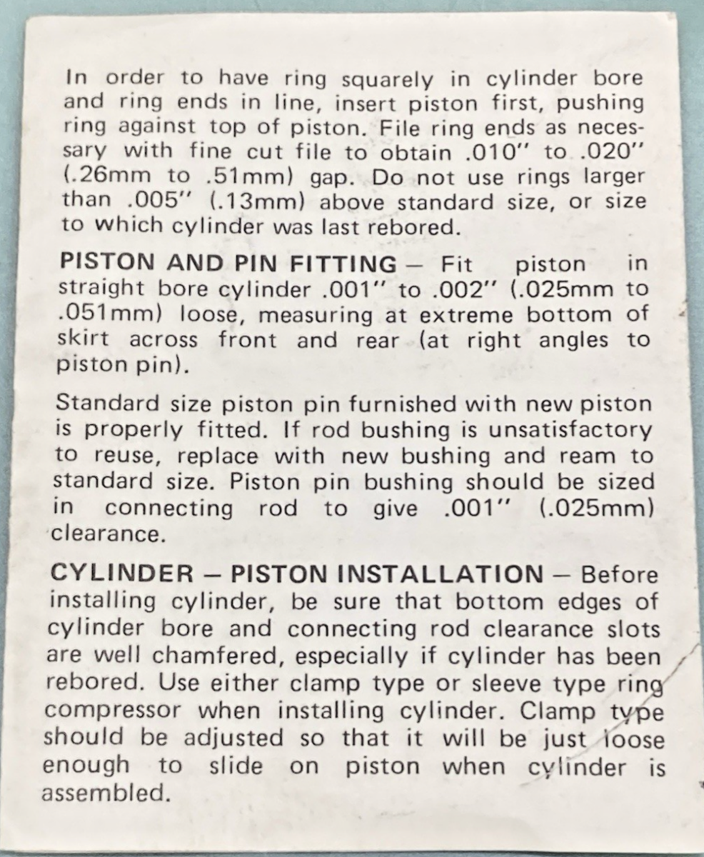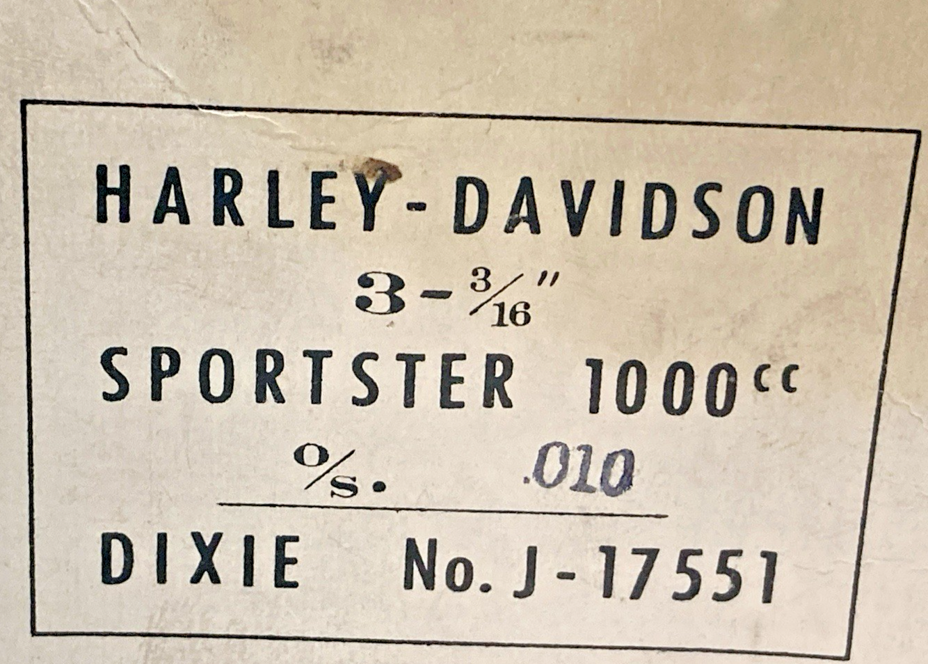 NEW GENUINE DIXIE J-17551 PISTON KIT, 3-3/16 BORE O/S .010, HARLEY DAVIDSON