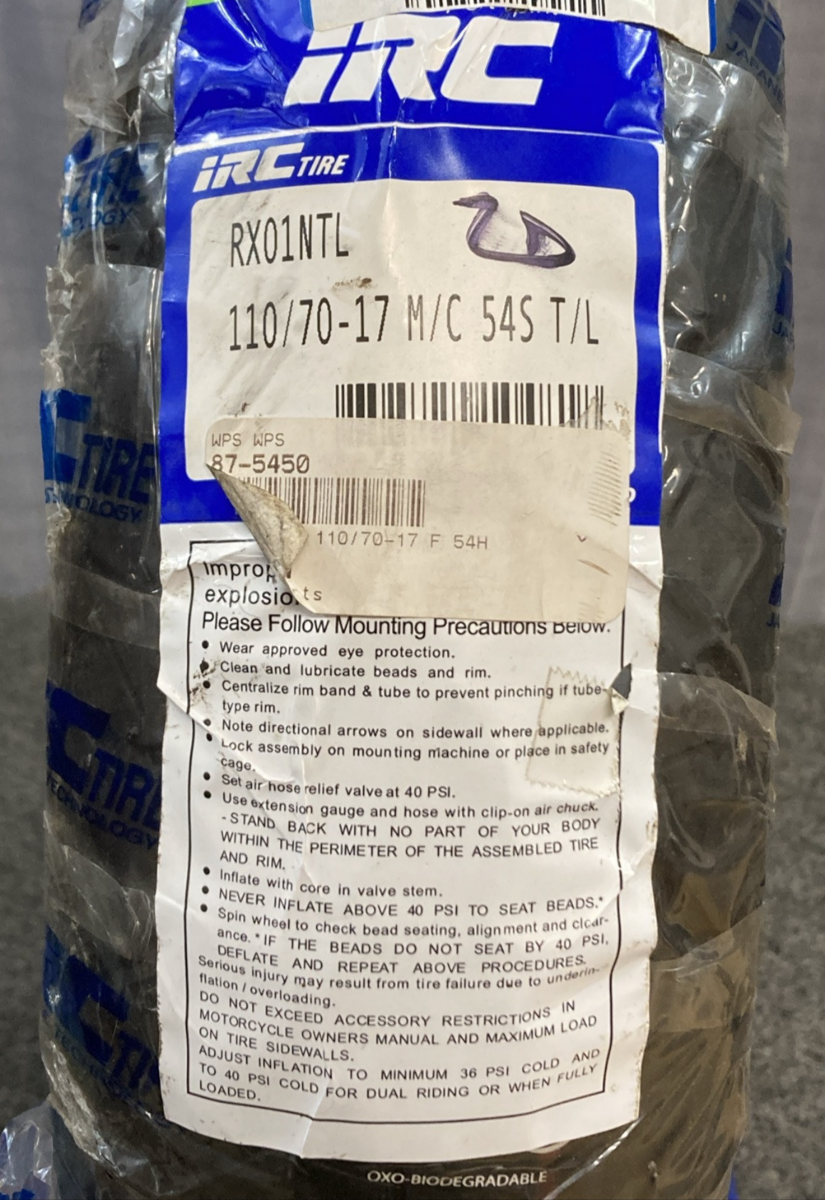NEW GENUINE IRC RX01 110/70-17 54S TUBELESS FRONT MOTORCYCLE TIRE T10283