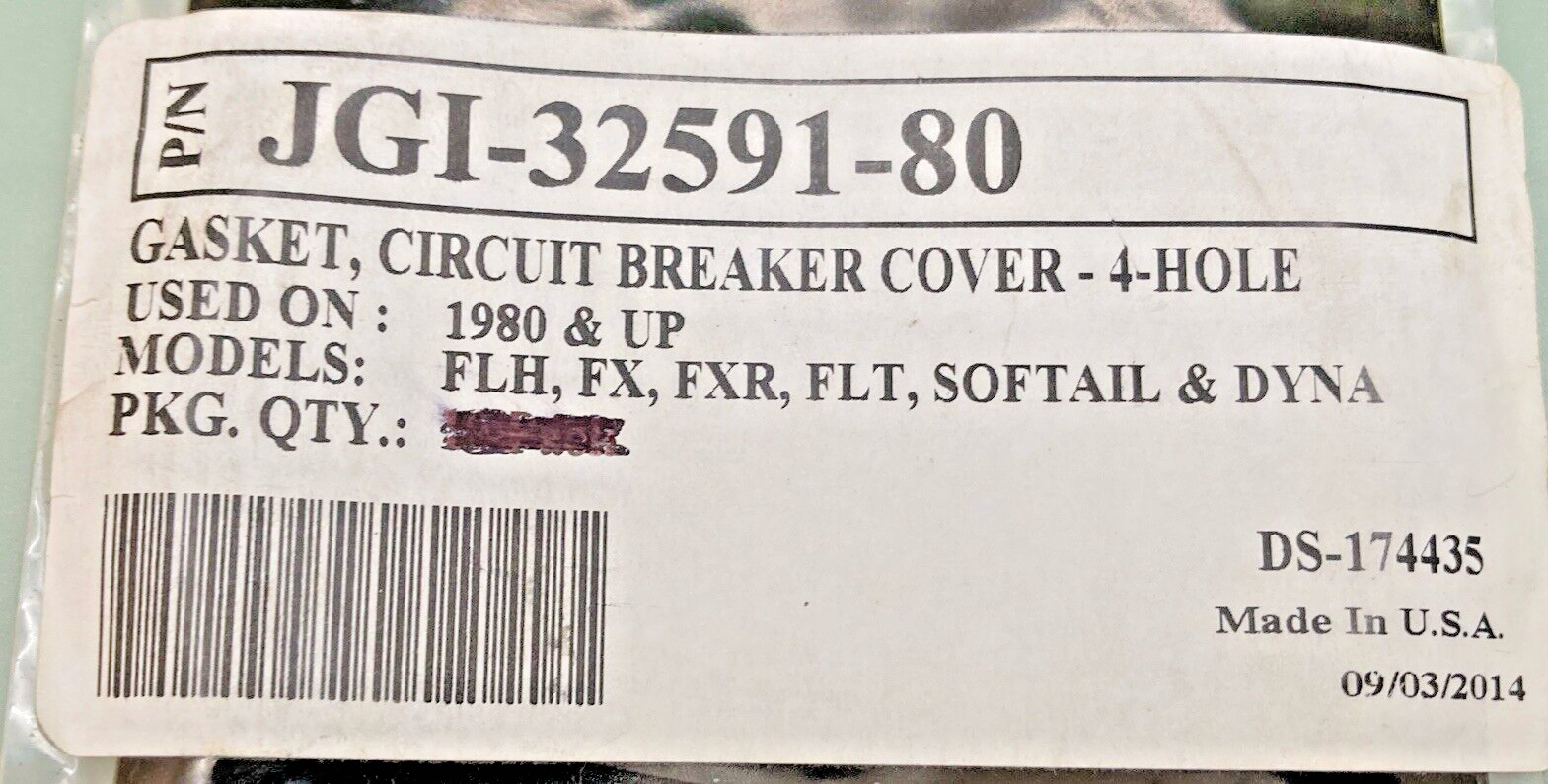NEW GENUINE JAMES GASKETS JGI-32591-80 GASKET, CIRCUIT BREAKER COVER- 4-HOLE