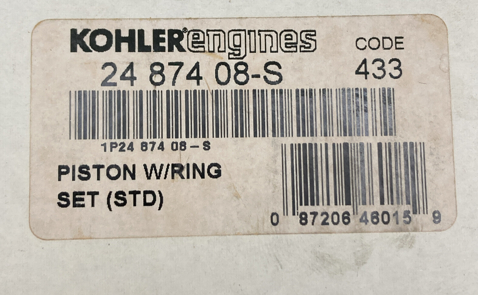 NEW GENUINE KOHLER 24 874 08-S PISTON W/RING SET (STD)
