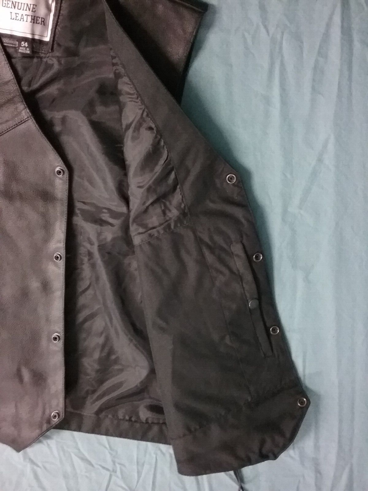 NEW GENUINE LEATHER MENS SZ 54 XXL Black Snap Front Motorcycle Vest