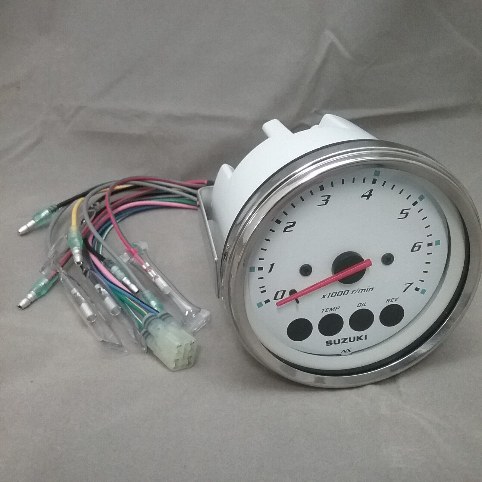 NEW GENUINE SUZUKI 34200-93J14 TACHOMETER WHITE CHROME BEZEL 7,000RPM W/ MONITOR