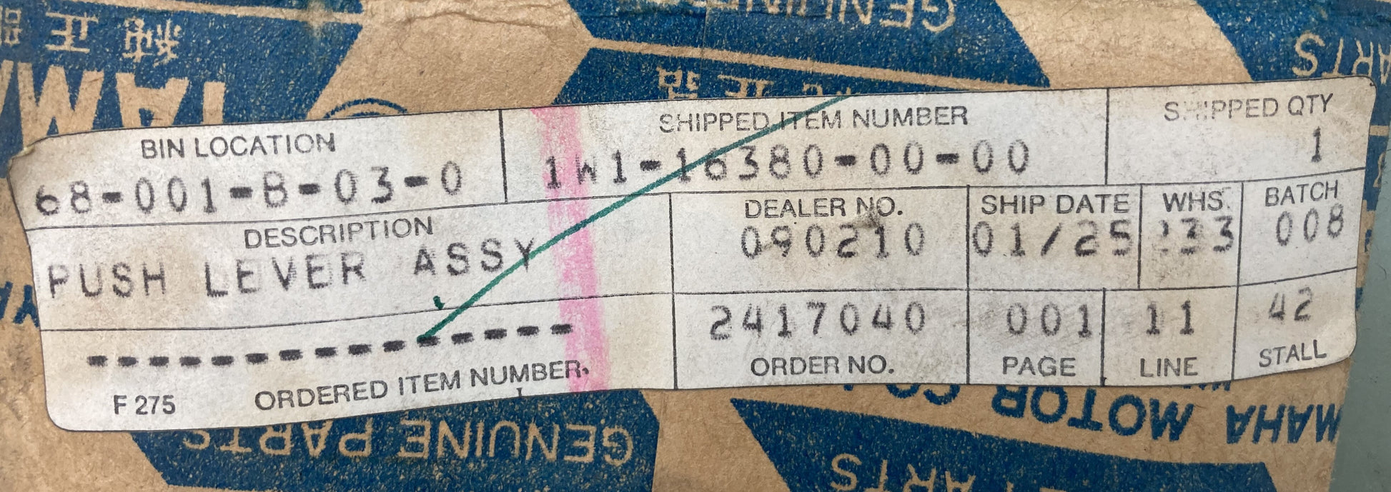 New Genuine Yamaha 1w1-16380-00-00 Push Lever Assembly