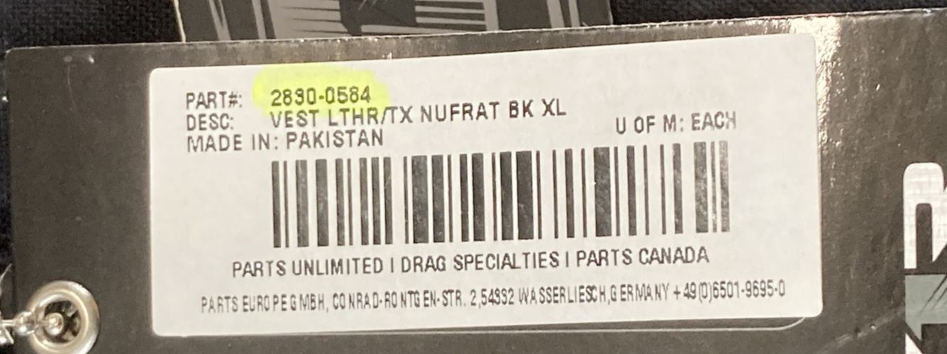 NEW GENUINE Z1R 2830-0584 Nufrat Vest BLACK LEATHER/CANVAS MENS X-LARGE