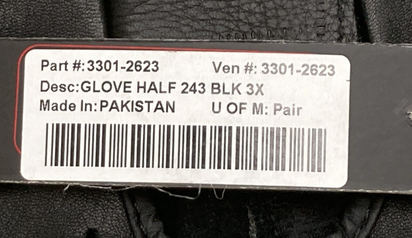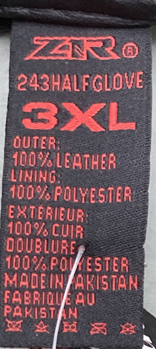 NEW GENUINE Z1R 3301-2623 GLOVES HALF FINGER 243 BLACK LEATHER MENS 3XL