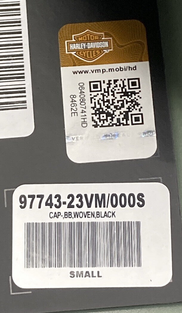 NEW HARLEY DAVIDSON 97743-23VM MEN'S SMALL B&S BLACK WOVEN FITTED BB CAP 7-1/8