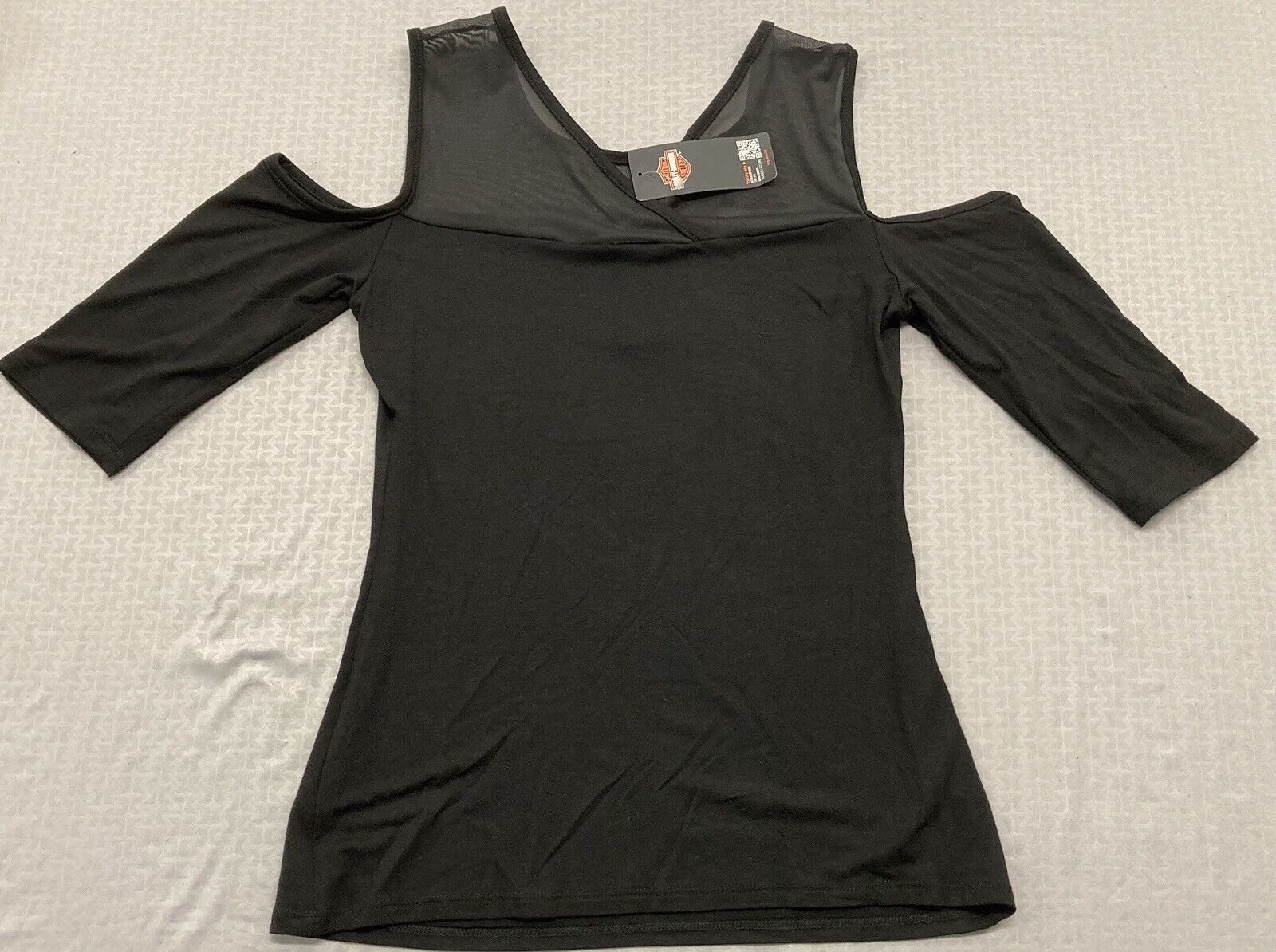 NEW HARLEY DAVIDSON HT4682BLK WOMEN'S BED OF ROSES COLD SHOULDER TEE M