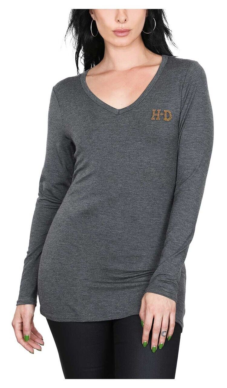 NEW HARLEY DAVIDSON HT4739GRY Women's Harley Proud Long Sleeve V-Neck Shirt L