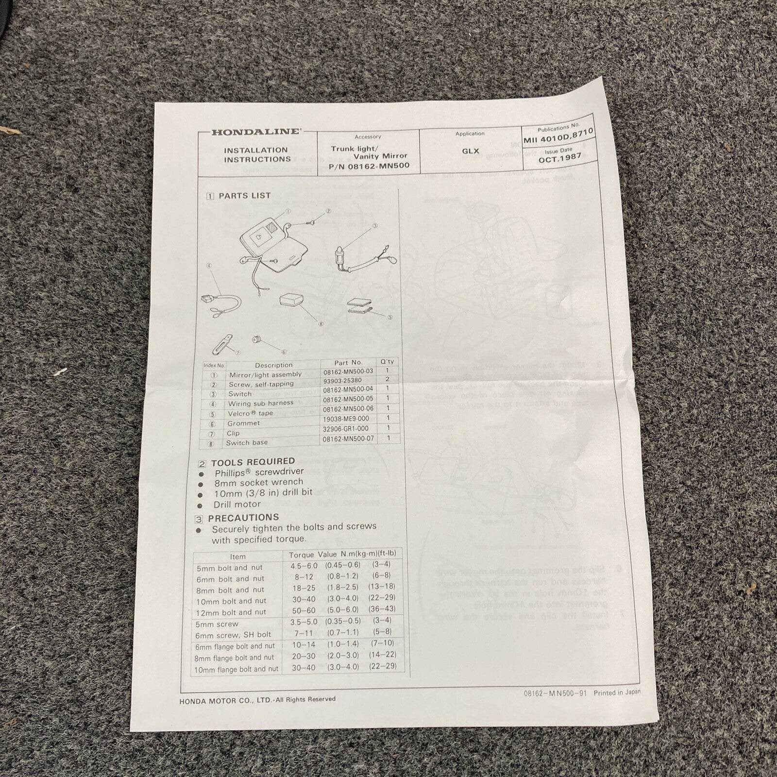 NEW HONDALINE 08162-MN500 TRUNK L/G V/N LIGHT/MIRROR