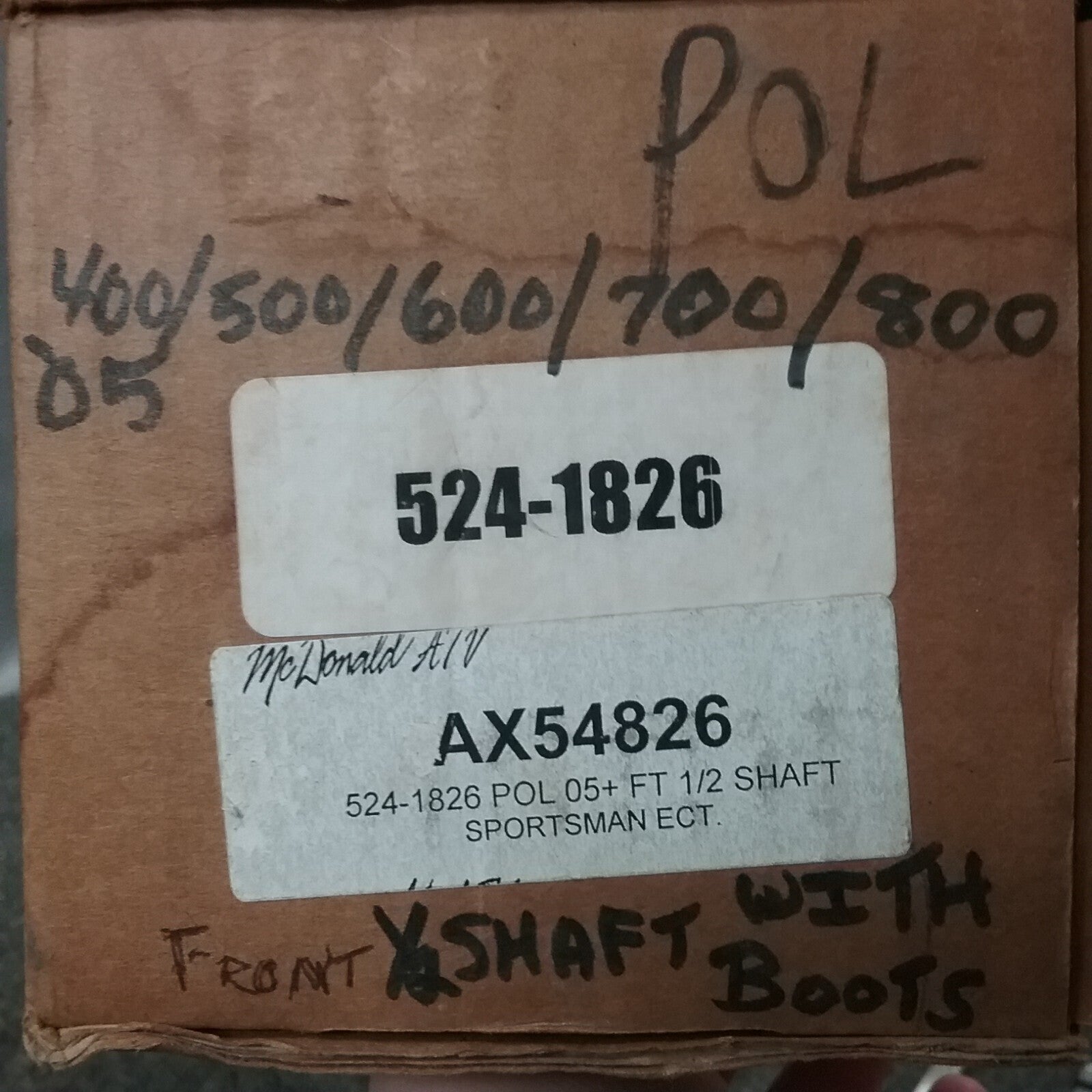 NEW J&M ATV AX54826 FRONT 1/2 SHAFT AXLE WITH BOOTS POLARIS SPORTSMAN 524-1826