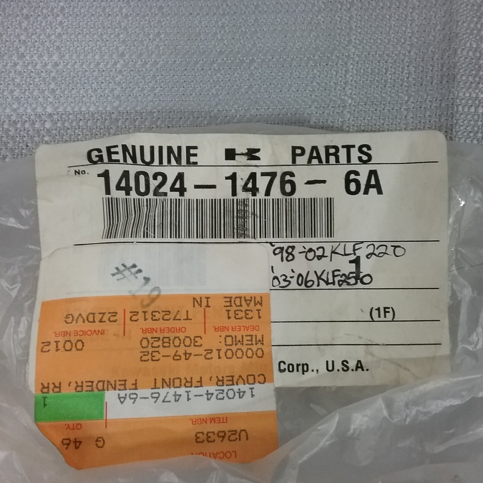NEW KAWASAKI 14024-1476-6A FUEL TANK COVER Bayou KLF220 KLF250 1998-2006