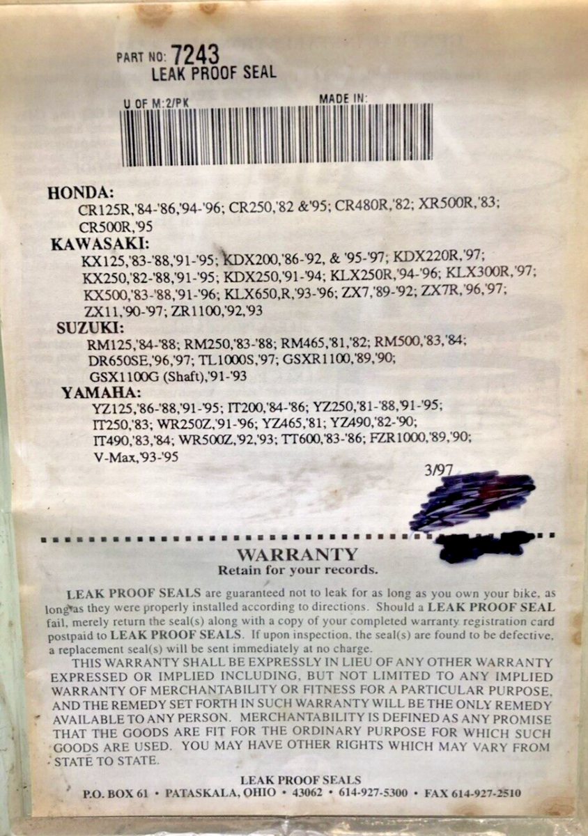 NEW LEAK PROOF FORK SEALS #7243 43MM X 55MM, HONDA KAWASKI SUZUKI YAMAHA