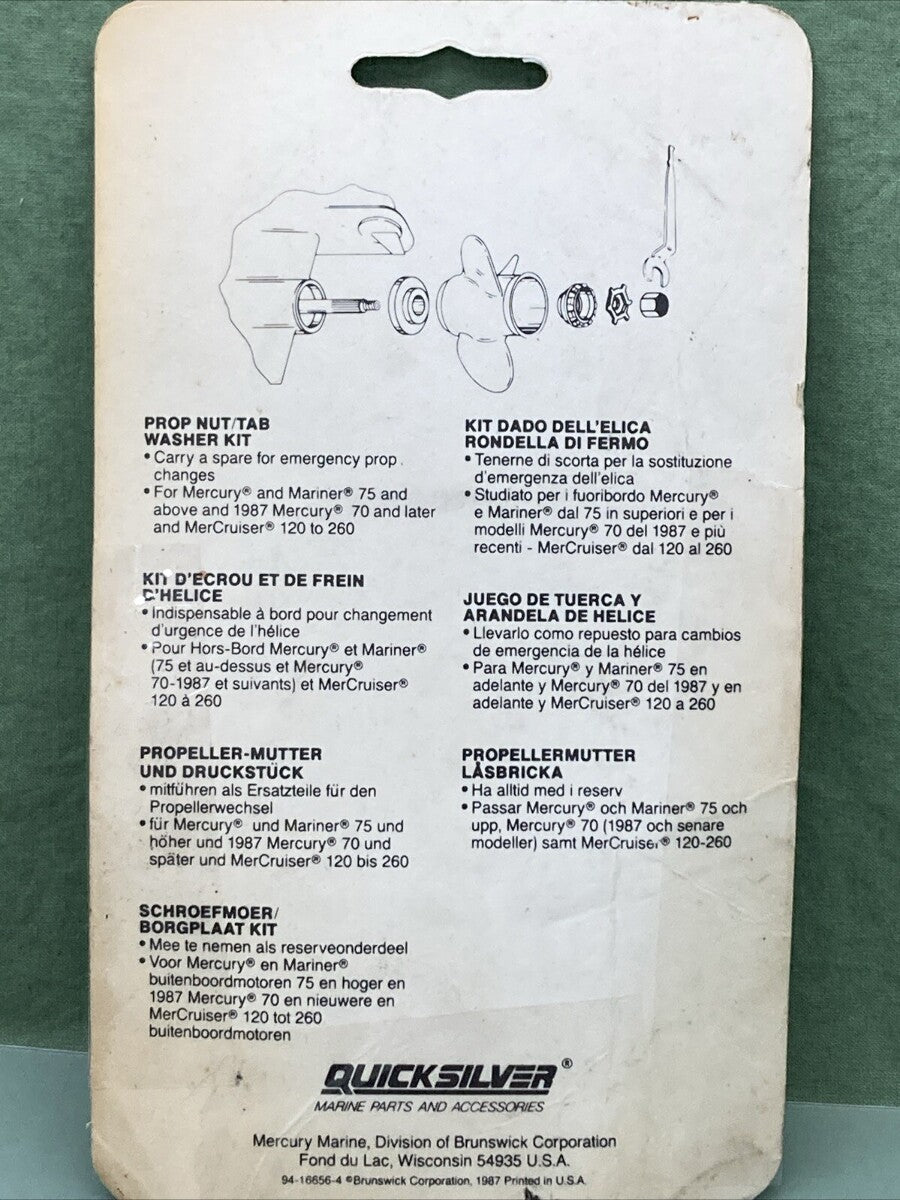 NEW MERCURY QUICKSILVER 11-52707A 1 PROPELLER NUT, INCOMPLETE KIT