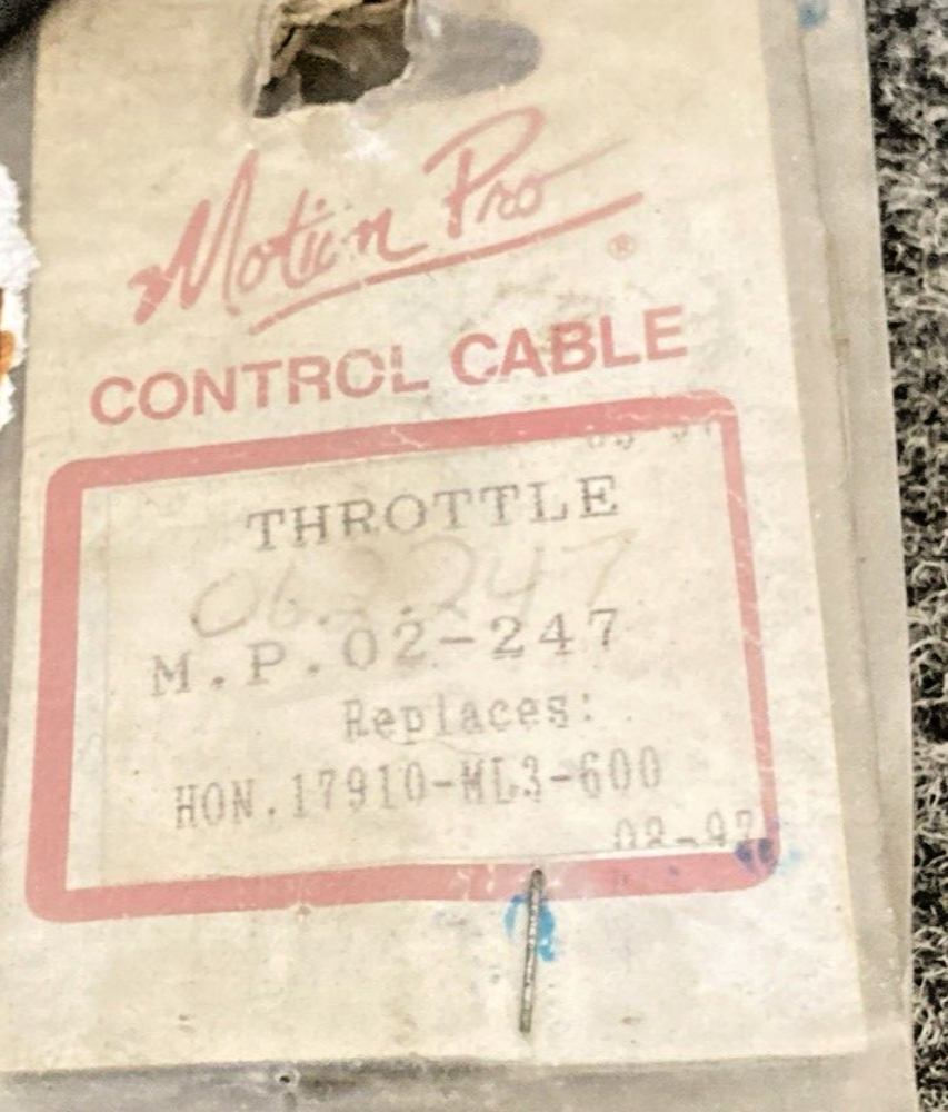NEW MOTION PRO 02-247 BLACK VINYL THROTTLE CABLE, HONDA 93 CR500R, 17910-ML3-600